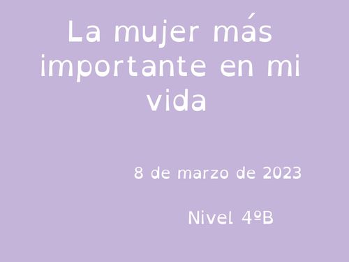 Con motivo del 8 de marzo, " Día internacional de la mujer" les propuse a l@s alumn@s hacer un canva a la mujer que para ellos fuera la más importante en su vida, podía ser cualquiera: su abuela, su tía, su madre...Ellos evidentemente eligieron a su madre y les escribieron cosas tan bonitas como las que podéis ver en esta muestra. Aprendieron a descargar una foto de su mamá de su correo y la insertaron en su trabajo y lo mejor de todo es que lo hicieron con mucho amor, porque iba destinado a la mujer más importante de sus vidas: SU MADRE. Enhorabuena a todas por tener estos hij@s tan fantástic@s .